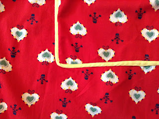 Here's a red tulips beauty. Until I was taking the close-up photo I didn't realize the stems are in Dutch clogs! It has one pocket on the left and so pristine I doubt it's ever been used. A border print put to great use.